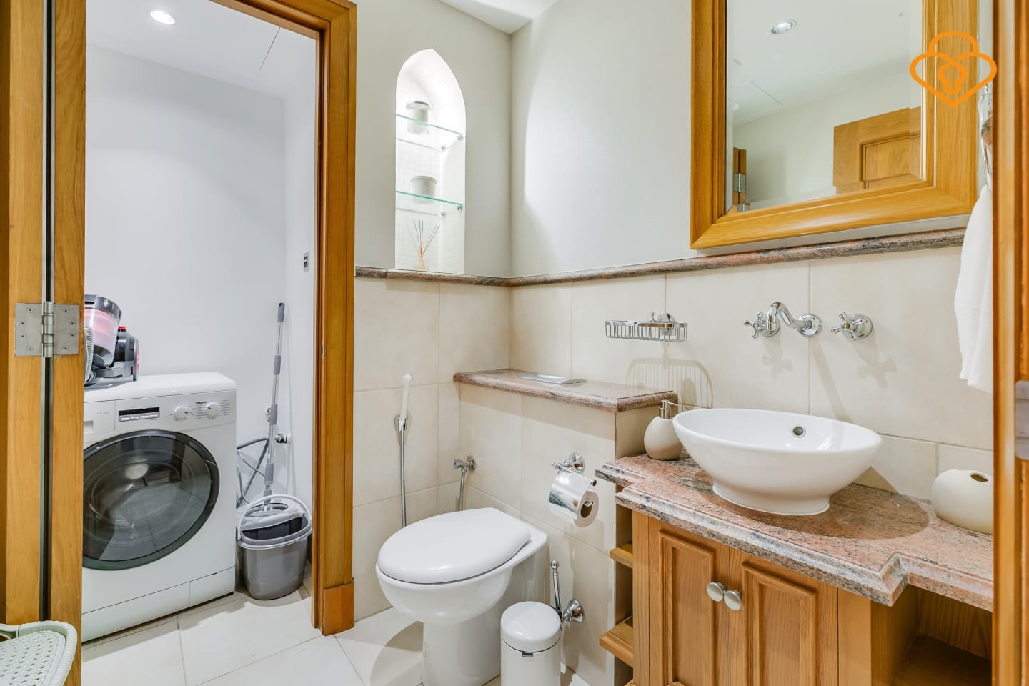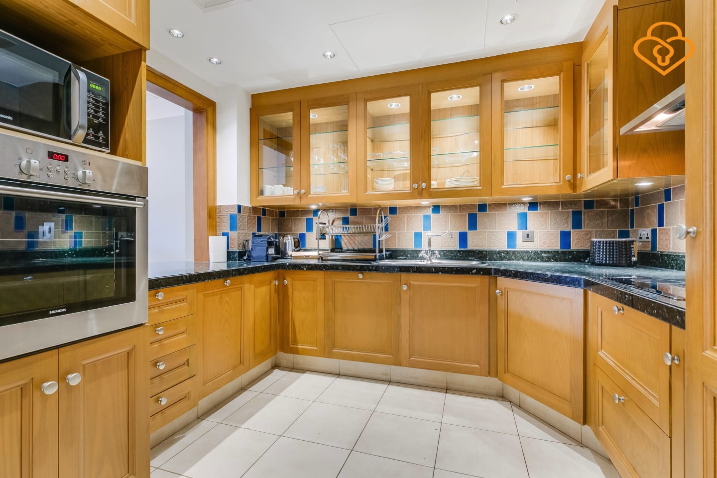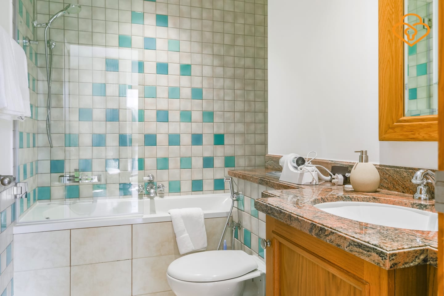 The apartment features a spacious living room with a modern and trendy touch, providing the perfect place to relax and unwind after a long day exploring. The fully equipped kitchen is complete with all the necessary appliances.