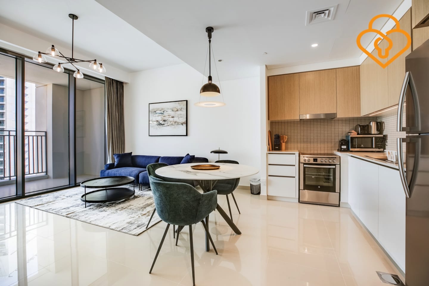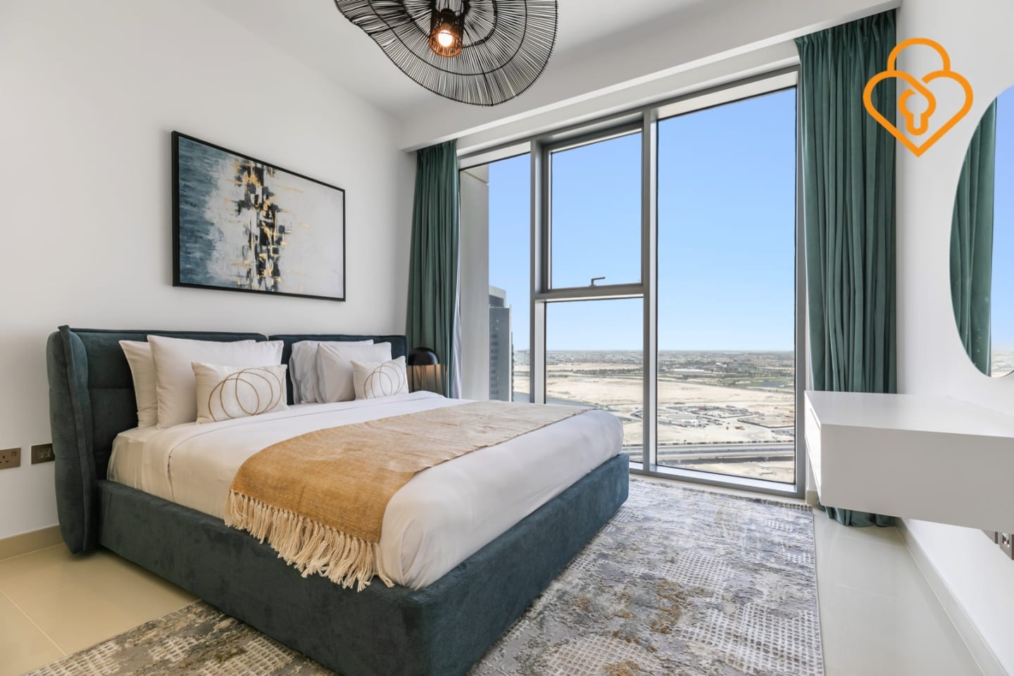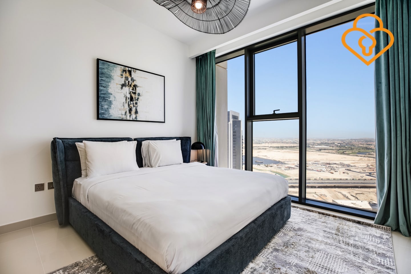 Creek gate luxury one bedroom apartment with magnificent views of the water modern and stylish apartment offers stunning views of the Dubai Creek and the iconic skyline, as well as all the comfort and amenities you need for a memorable stay. The apartment features a spacious and bright living room, a fully equipped kitchen with state-of-the-art appliances, a cozy bedroom with a comfortable bed and plenty of storage, and a sleek bathroom with high-end fittings and a walk-in shower.