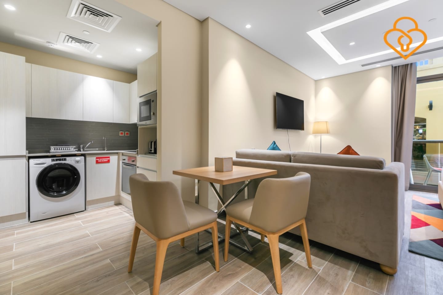 A Modern Murjan studio on the plaza level refers to a newly constructed studio apartment situated on the ground level of a building called Murjan. The term "plaza level" suggests that the studio is located on the floor that opens up to a plaza or a communal area.
