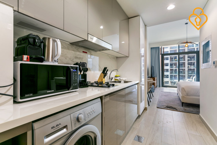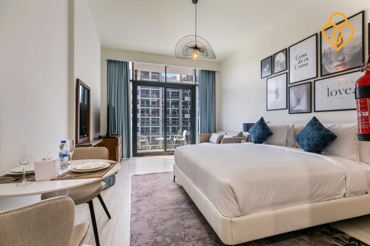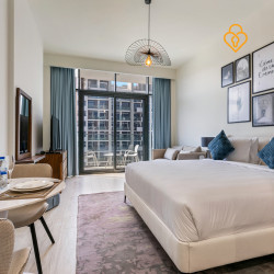 A living concept in a modern New York-style studio in Azizi Riviera, 20 minutes from Downtown Dubai