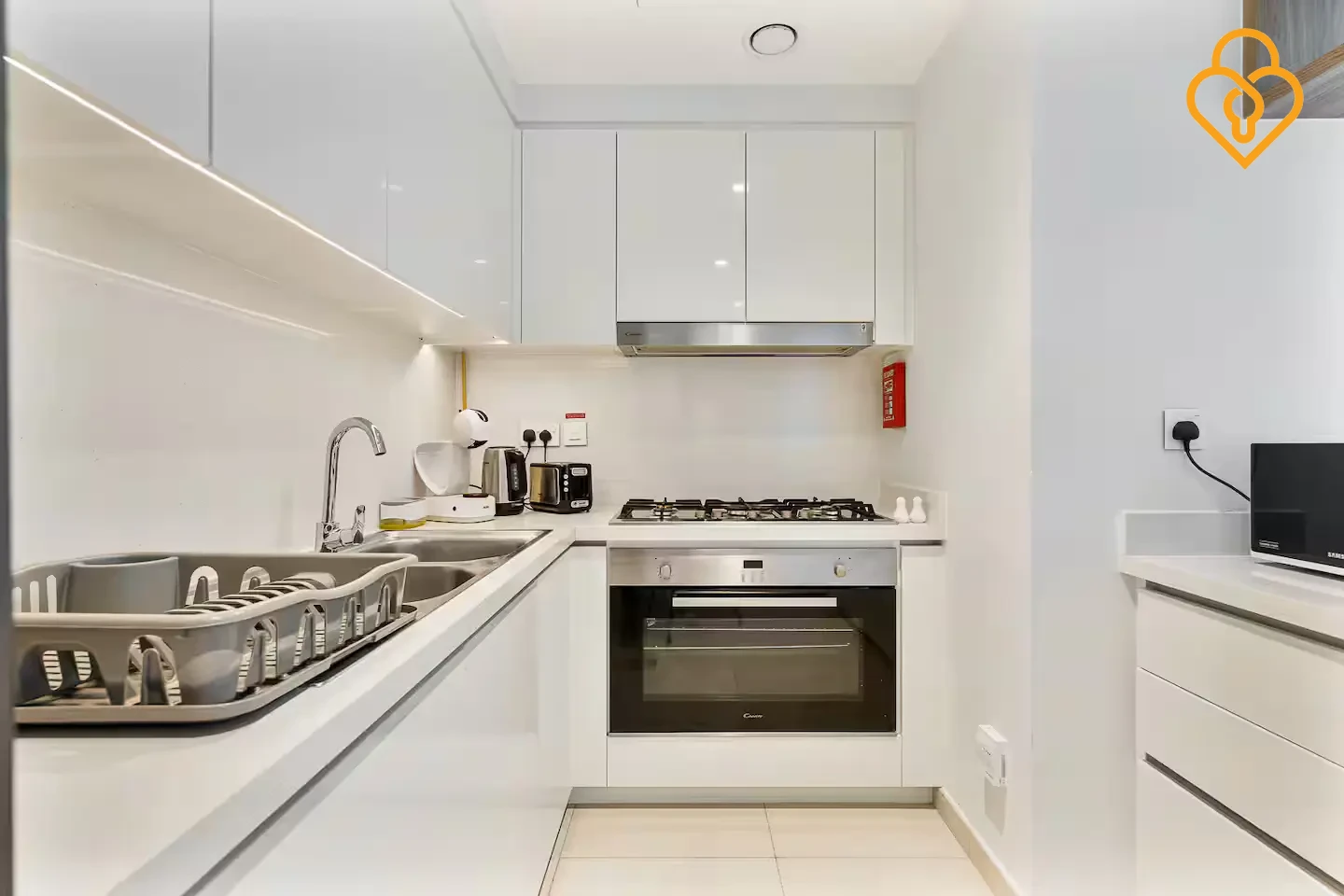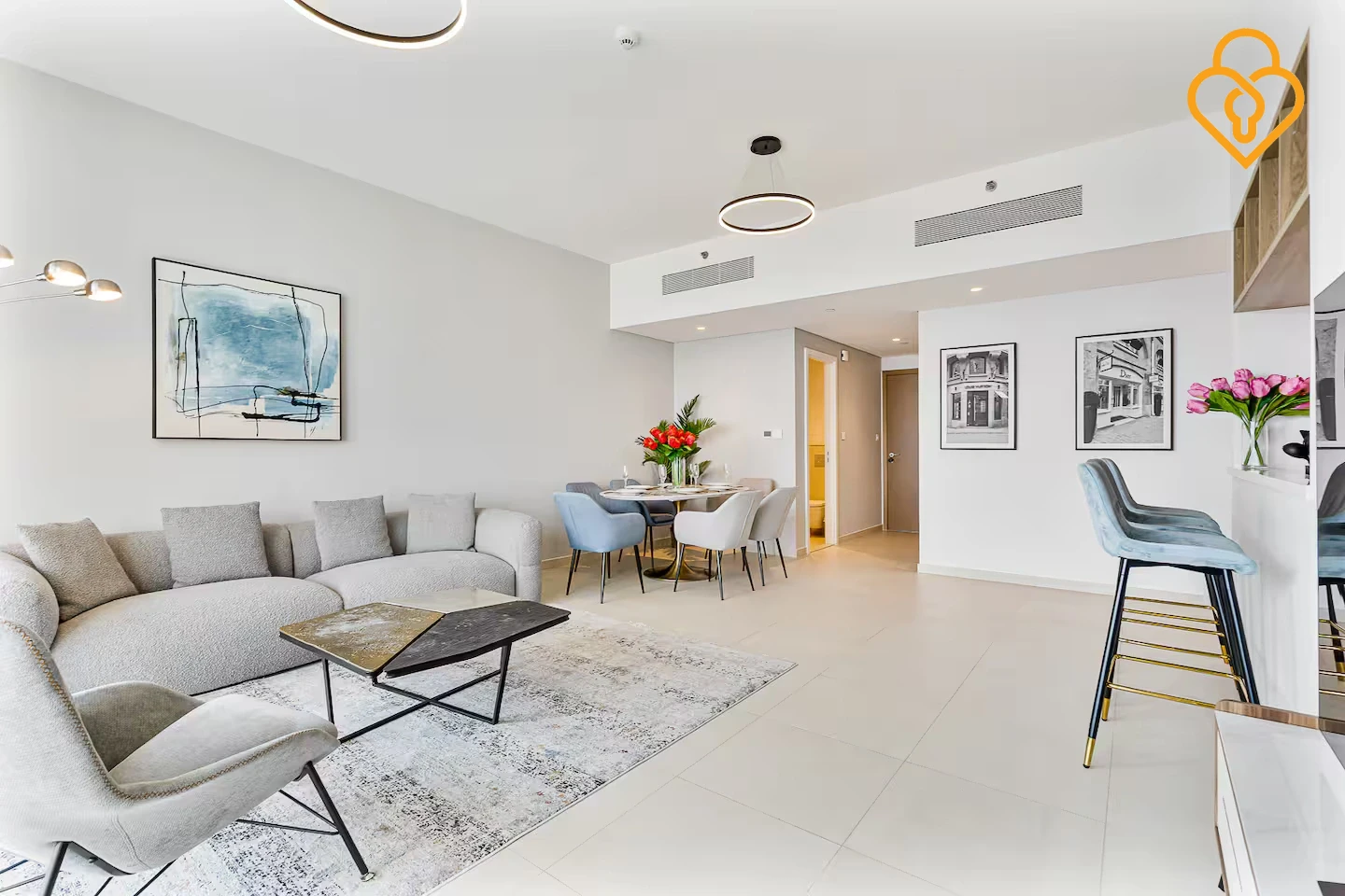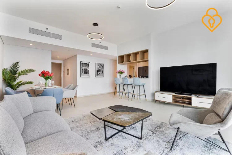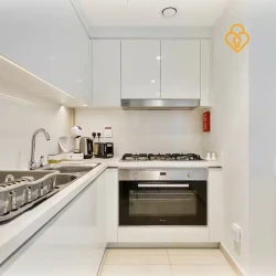 The apartment is located in right opposite Dubai Mall and is accessible on top Carrefour Market which opens 24 hrs. A nice breakfast place with tasty oven baked dishes is located just downstairs as well.