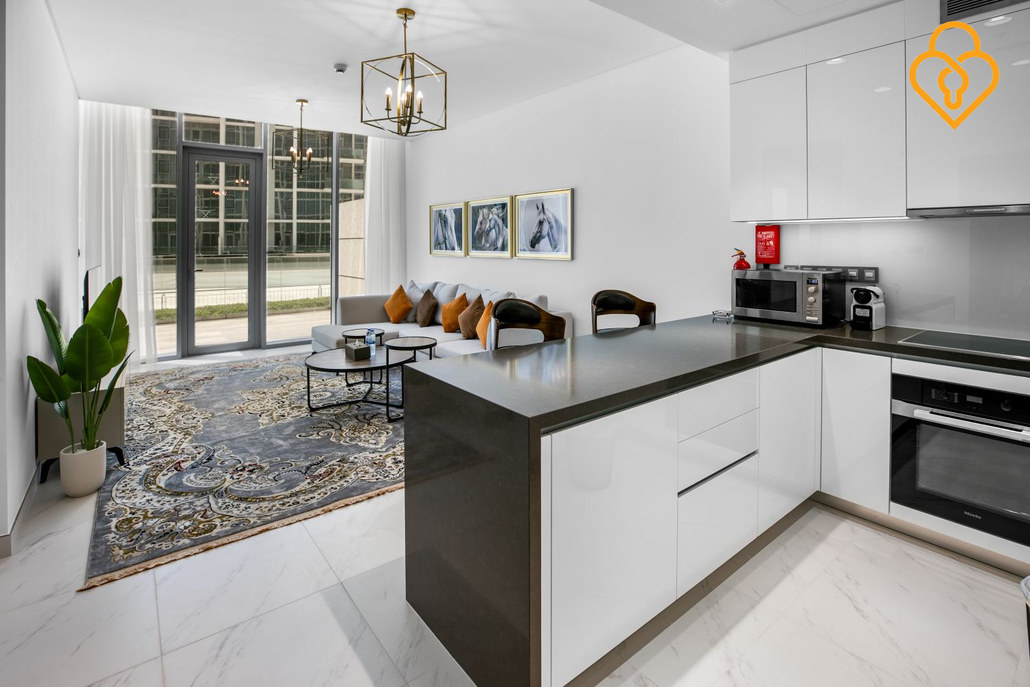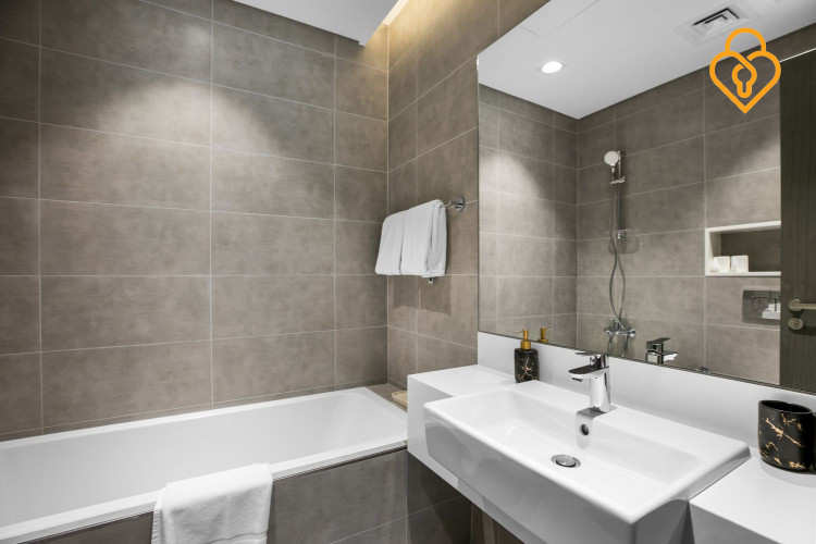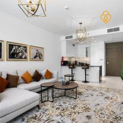 A modern and spacious 1BR Apartment located on the ground floor of Residences 15 in District 1, MBR City.