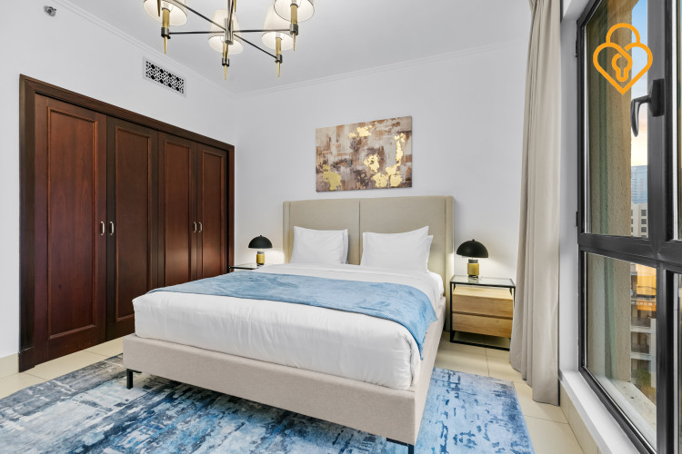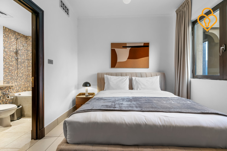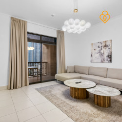 Live luxuriously in this two-bedroom apartment with a study in the Reehan building. Enjoy stunning views of the Burj Khalifa and a blend of modern design with traditional charm. This spacious retreat is perfect for relaxation or productivity, all within the vibrant heart of Old Town